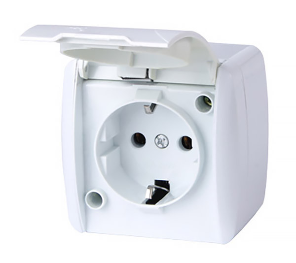 Priză cu capac cu împământare albă aparentă 16A IP54 220V Enext