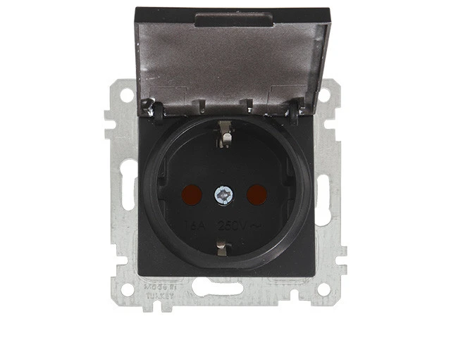 Priză cu capac cu împământare neagră incorporabilă 16A IP20 220V rita Mutlusan