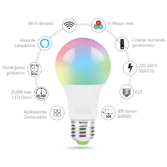 BEC LED 10W E27 WI-FI ACK