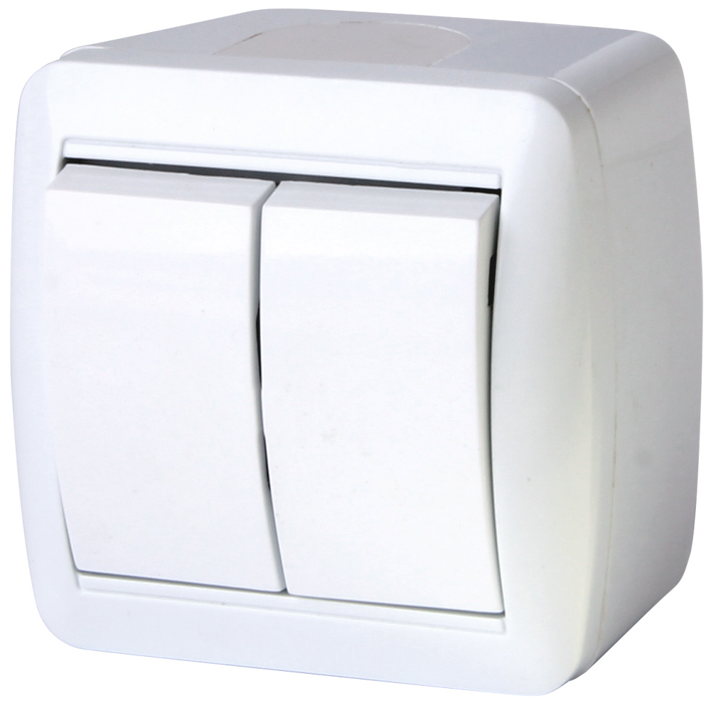 Выключатель двухклавишный накладной белый 10A ИП44 220V Enext