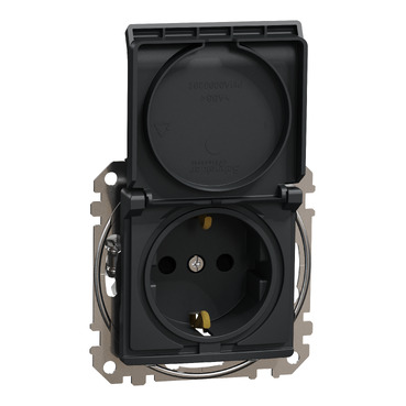 Розетка с крышкой с заземлением антрацит встраиваемывая 16A ИП20 220V sedna New Schneider