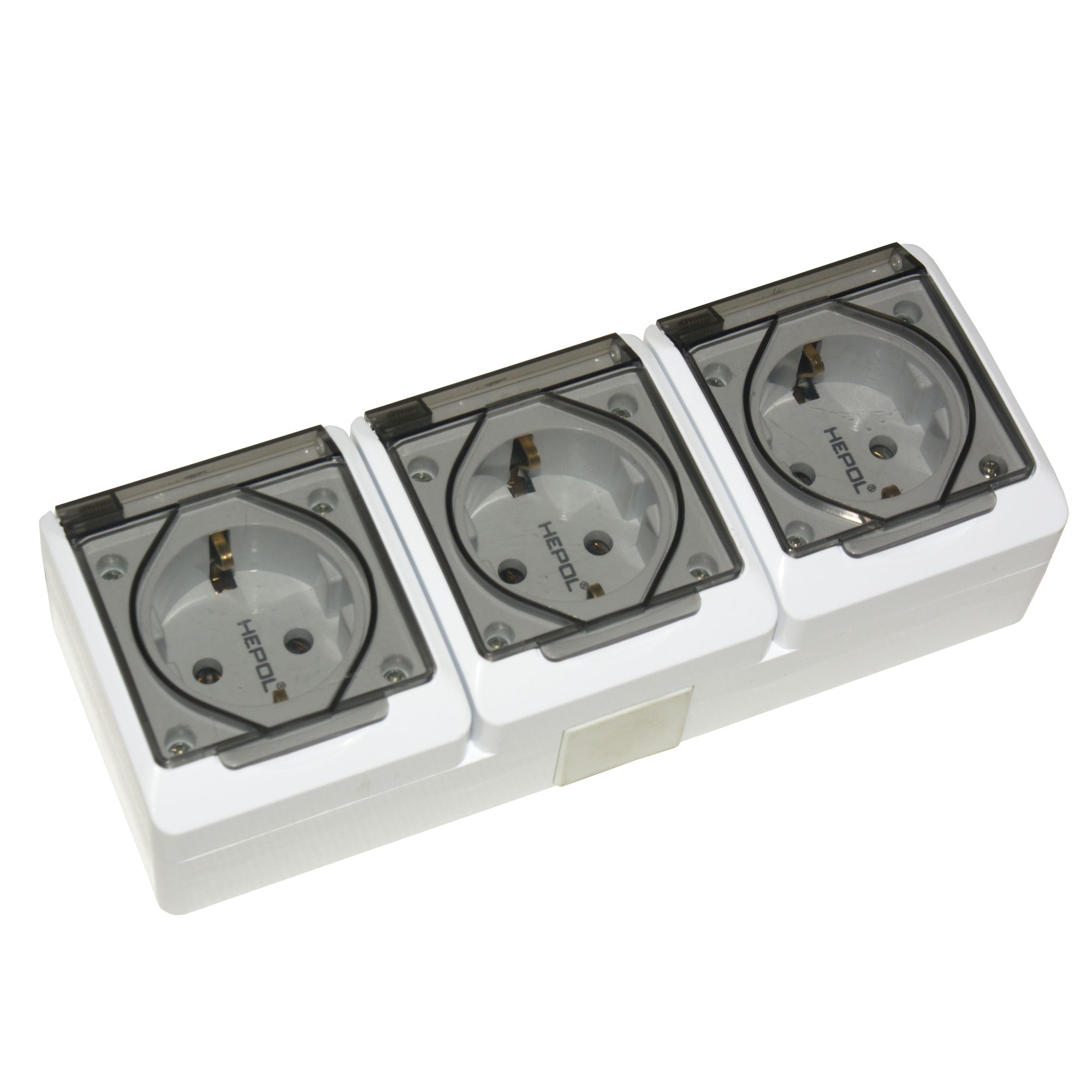 Tройная розетка с крышкой белый/Серый накладная 16A ИП20 220V Злмос